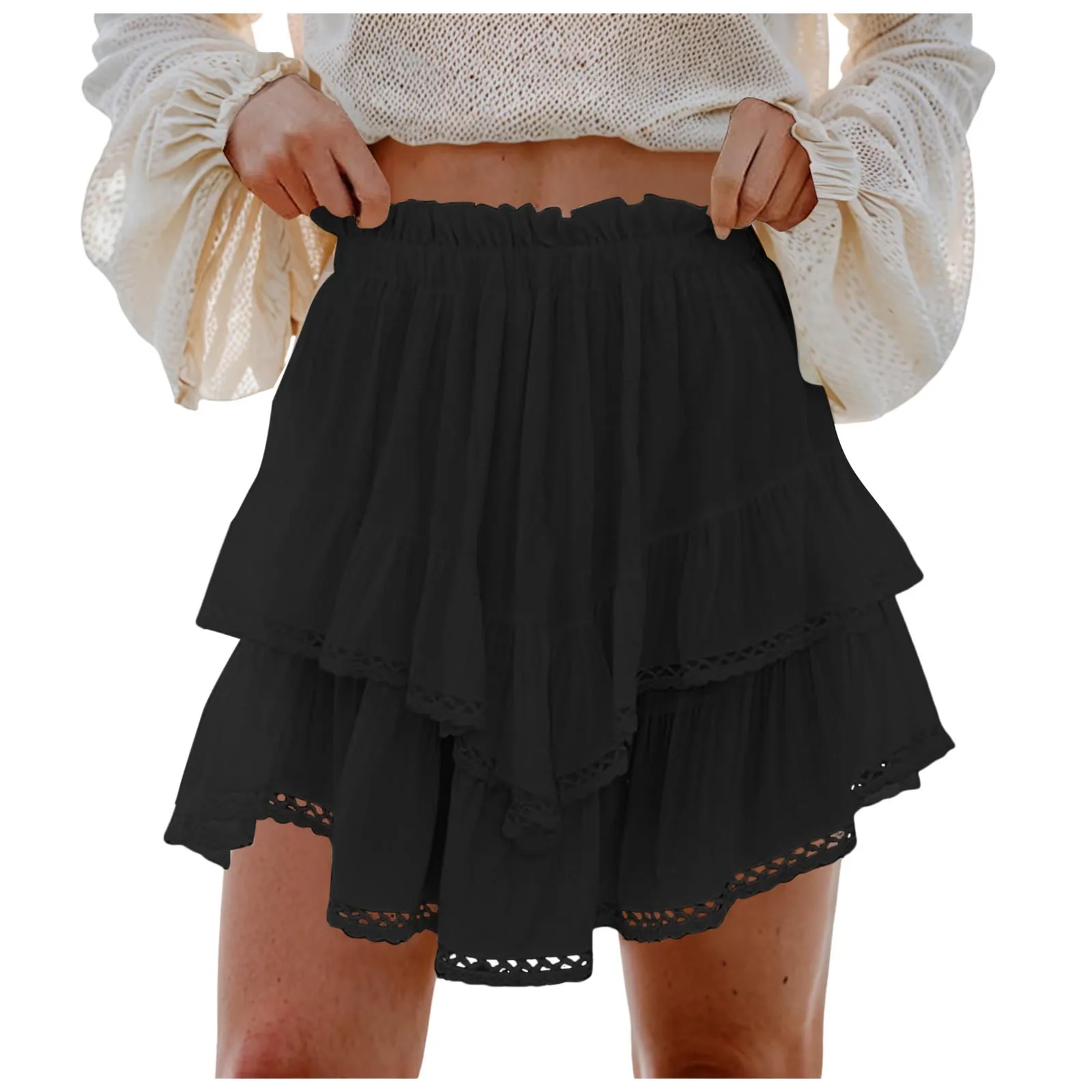 Matching: This women's crochet ruffle skirt matches perfectly with tank tops, vests, shirts, sweaters, cardigans, sweatshirts and T-shirts to create your favorite casual look