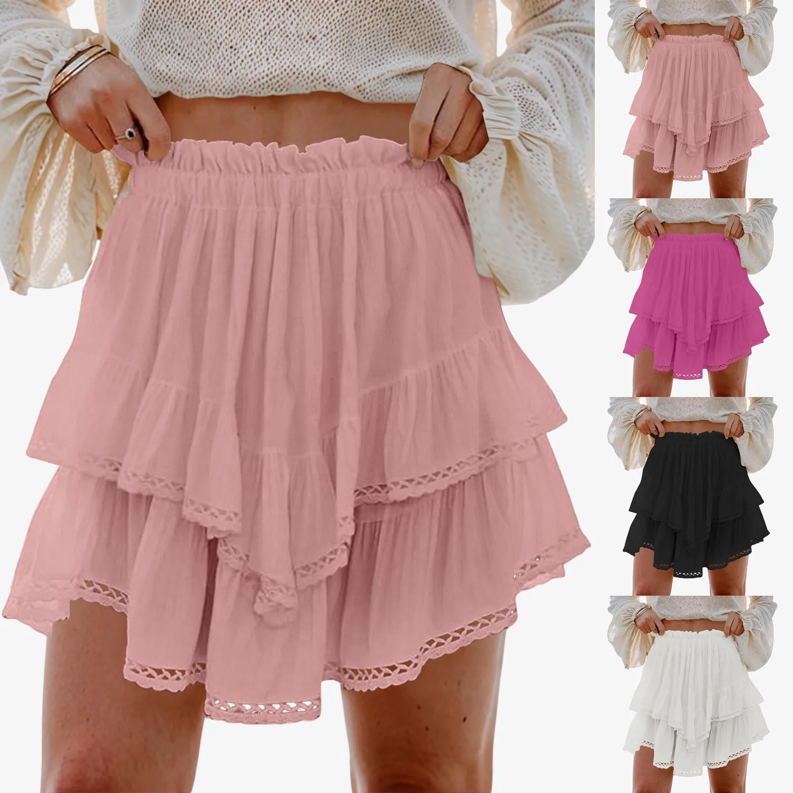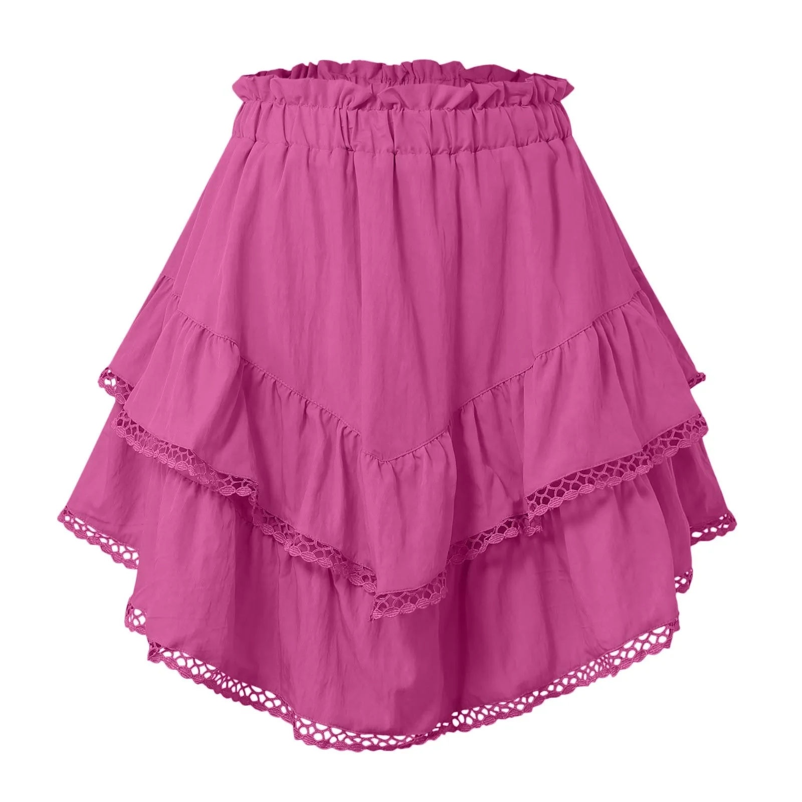 Features: This women's casual mini skirt features an elastic waistband, ruffled and solid colors. Paired with shorts under the skirt, the length is above the knee to comfort for daily activities