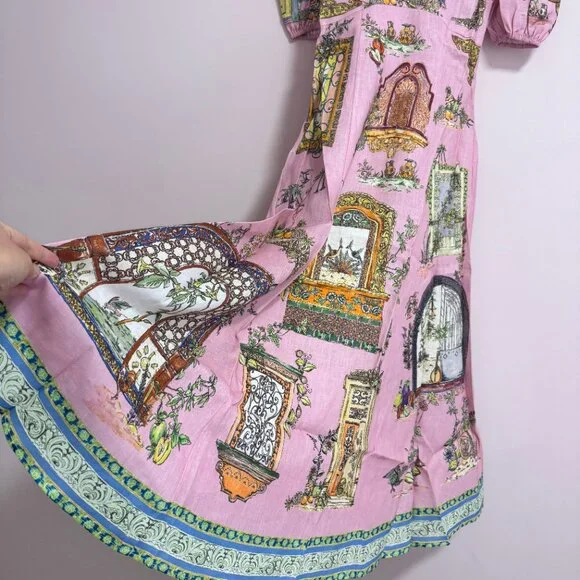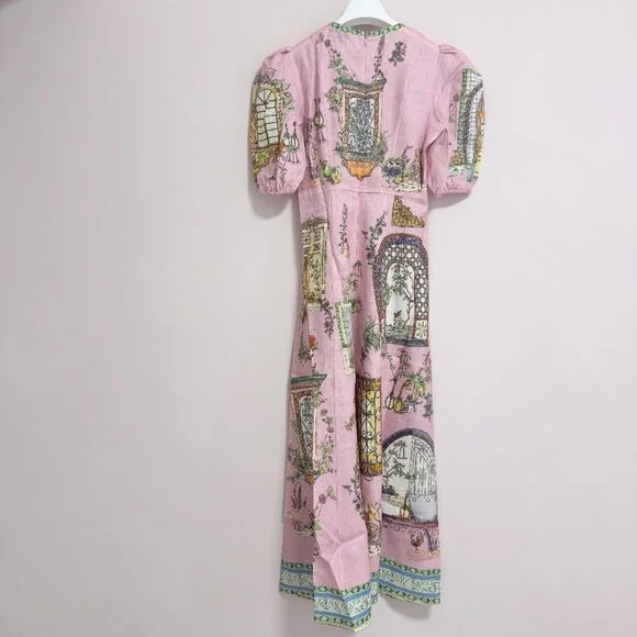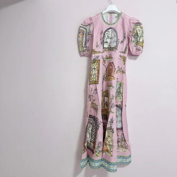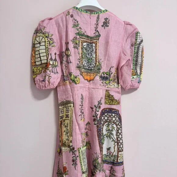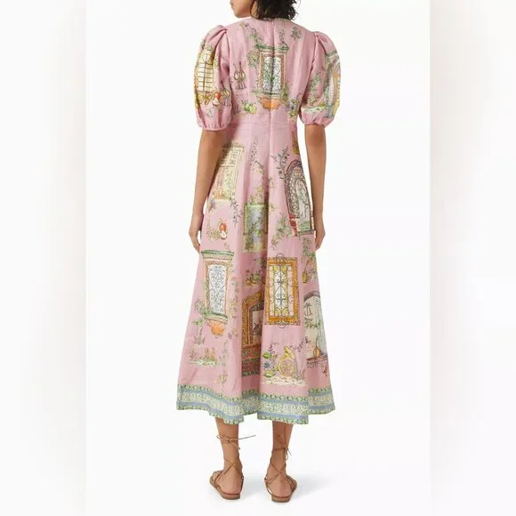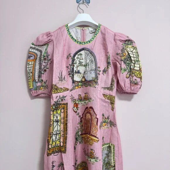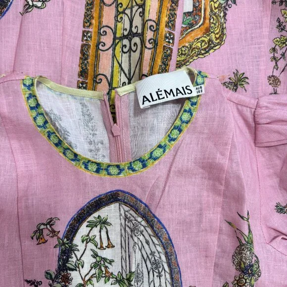 The Alemais Monte Midi Dress is the perfect blend of sophistication and playful elegance. Featuring a vibrant multi-colour design, this dress is tailored to flatter a variety of body types, ensuring that every woman can embrace its stylish, feminine appeal. The midi length offers a graceful silhouette, while the eye-catching colors add a fun and modern twist to any occasion. Whether you're attending a wedding, a garden party, or a casual outing, the dress is versatile enough to be styled in many ways. Round neck midi dress silhouette Balloon sleeve with elasticated cuff A line panelled midi skirt Invisible zipper at centre back Material Composition: 100% European Flax LinenDry washSize:AU6=US2