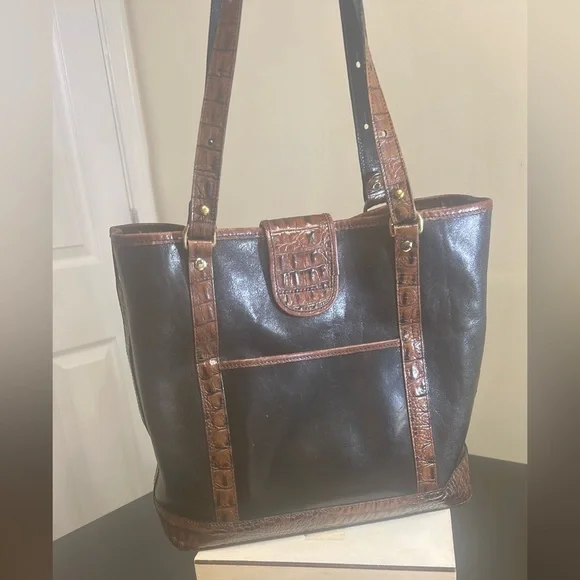 The Tuscan is a chic bucket bag inspired by an archival Brahmin style. Reimagined with modern details, this bucket bag features adjustable double tote straps that rest comfortably on your shoulder. Various interior compartments provide plenty of storage for your essentials and more, while an exterior back slide-in pocket offers the perfect place to store your phone or other small device.DIMENSIONS12" W X 11" H X 5.5" DAPPROXIMATE WEIGHT2.4 lb-Has key Holder-Clean interior & Exterior -No Wear/tear