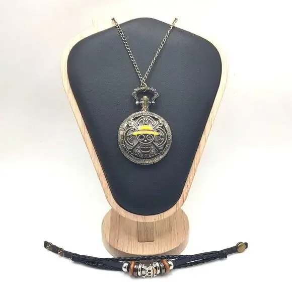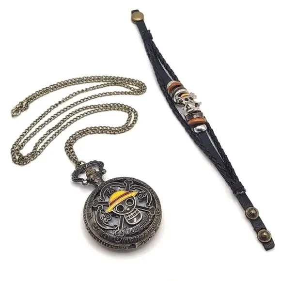 New One Piece Pocket Watch & Bracelet Gift Set Anime Manga Pirate Cosplay Fashion Style With Complementary Drawstring Gift Bag.ALL JEWELRY SHIPPED SAME OR NEXT BUSINESS DAY FROM THE U.S.A.!!!BUNDLE ITEMS FOR DISCOUNTED PRICING & SAVE ON SHIPPING!!!At Jaries, we strive to be a one stop shop for all your Jewelry needs with something for everyone. We have many Styles of Necklaces, Earrings, Bracelets, Rings, Lockets & More! Feel free to message us with any questions or for recommendations! Give us a follow & check back regularly to see our newest items!With this elegant & timeless style, you'll be sure to turn heads wherever you go or make a lasting impact with a classy & thoughtful gift! Perfect as a Christmas, Birthday, Valentines, Anniversary, Wedding, Fathers or Mothers Day Present. Great for a Son, Daughter, Sister, Brother or Cousin Graduation, Quinceanera, & Sweet 16 party. A kind Get Well or Promotion Gift for an adored Grandma, Grandpa, Aunt, Uncle or Close Friend.