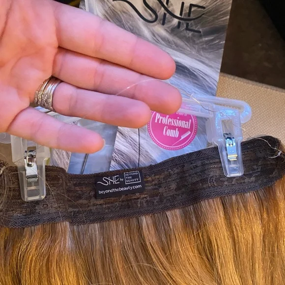 SHE Flip N Go Remy Natural Hair Extensions Brand New 16”-18” Dark/ Light BrownMade with all natural hair! You can color, style and wash as you would your natural head of hair! These extensions have only been worn once for a couple hours but my natural hair is just about the same length as the extensions so I no longer need them. It sits so comfortably on your head! **clips have been added to provide more stability!**16”-18” length retails for $1,300!🤑Reasonable offers will be accepted!